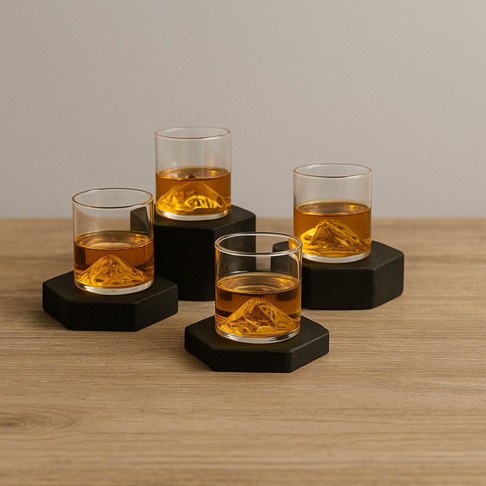 La pared transparente hace que cada matiz de tu licor o destilado parezca flotar sobre cumbres y valles (casi como en miniatura). Fabricados en vidrio de alta calidad, ideales como regalo o como acompañantes con estilo para veladas en buena compañía. Estos vasos elevan la experiencia de beber y, al brindar, serán sin duda tema de conversación.